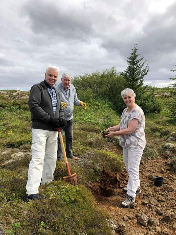 Unnið að gróðursetningunni í Hafnarfirði. Frá vinstri: Ólafur Haraldsson, John Spencer og Ragnheiður Ragnarsdóttir