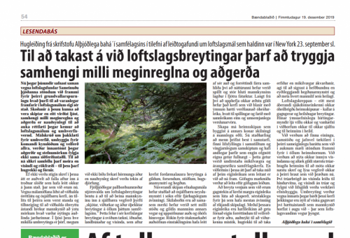 Hugleiðing Alþjóðlega bahá'í samfélagsins um loftslagsmál í Bændablaðinu